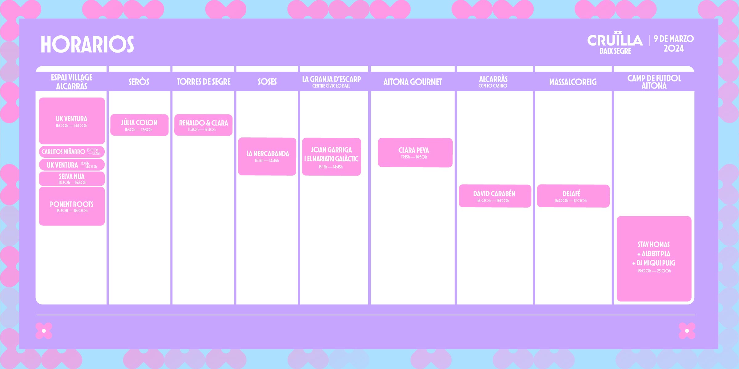 Horarios Cruïlla Comèdia 2024